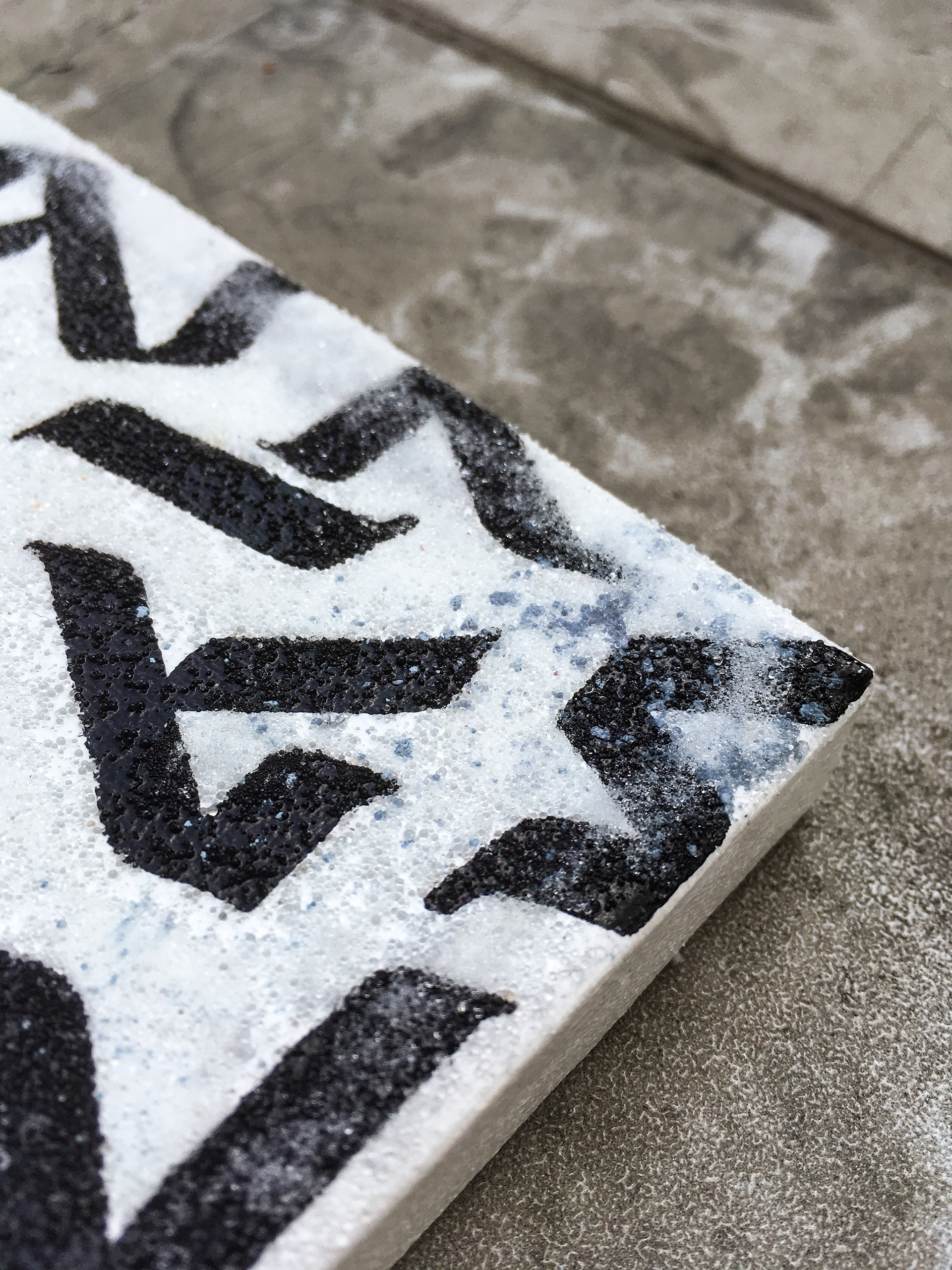 Canvas 30x30 cm, Marker, Acrylic paint, Reflection powder, Luminophore. 2019.