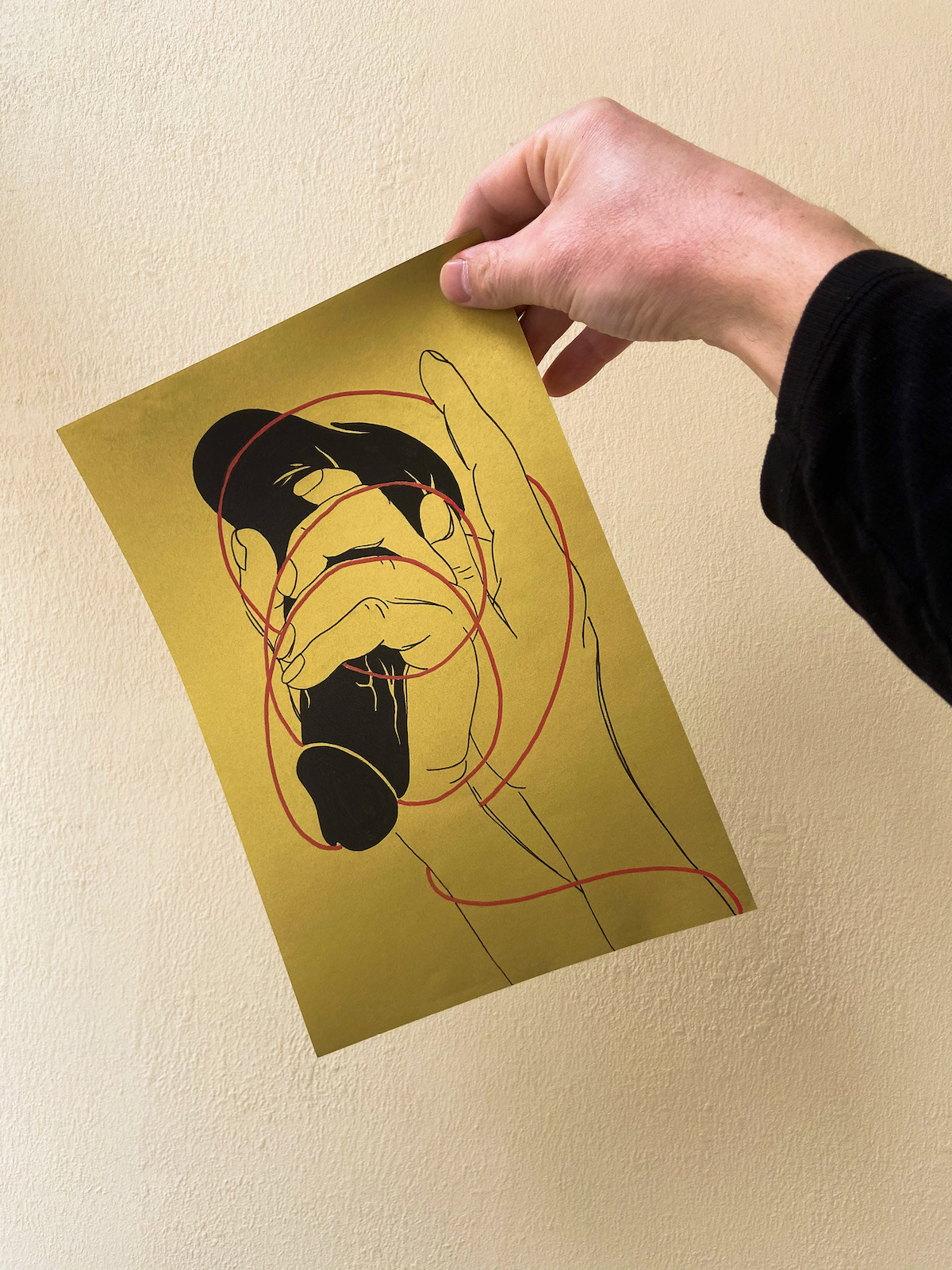 Мене зацікавило те як людина реагує на зображення зі своєї точки зору, зі своїм бекграундом та світосприйняттям. Як зображення, нормальне для мене чи когось іншого, може бути зрадою, лайном і повним провалом для іншого. Момент спостерігання поєднує сюжет малюнку та минулий досвід глядача, і з’являється абсолютно різні реакції. Цей процес мені нагадує нейтральне біле світло, що з однієї сторони потрапляє в прозору призму а з іншої розходиться райдугою.