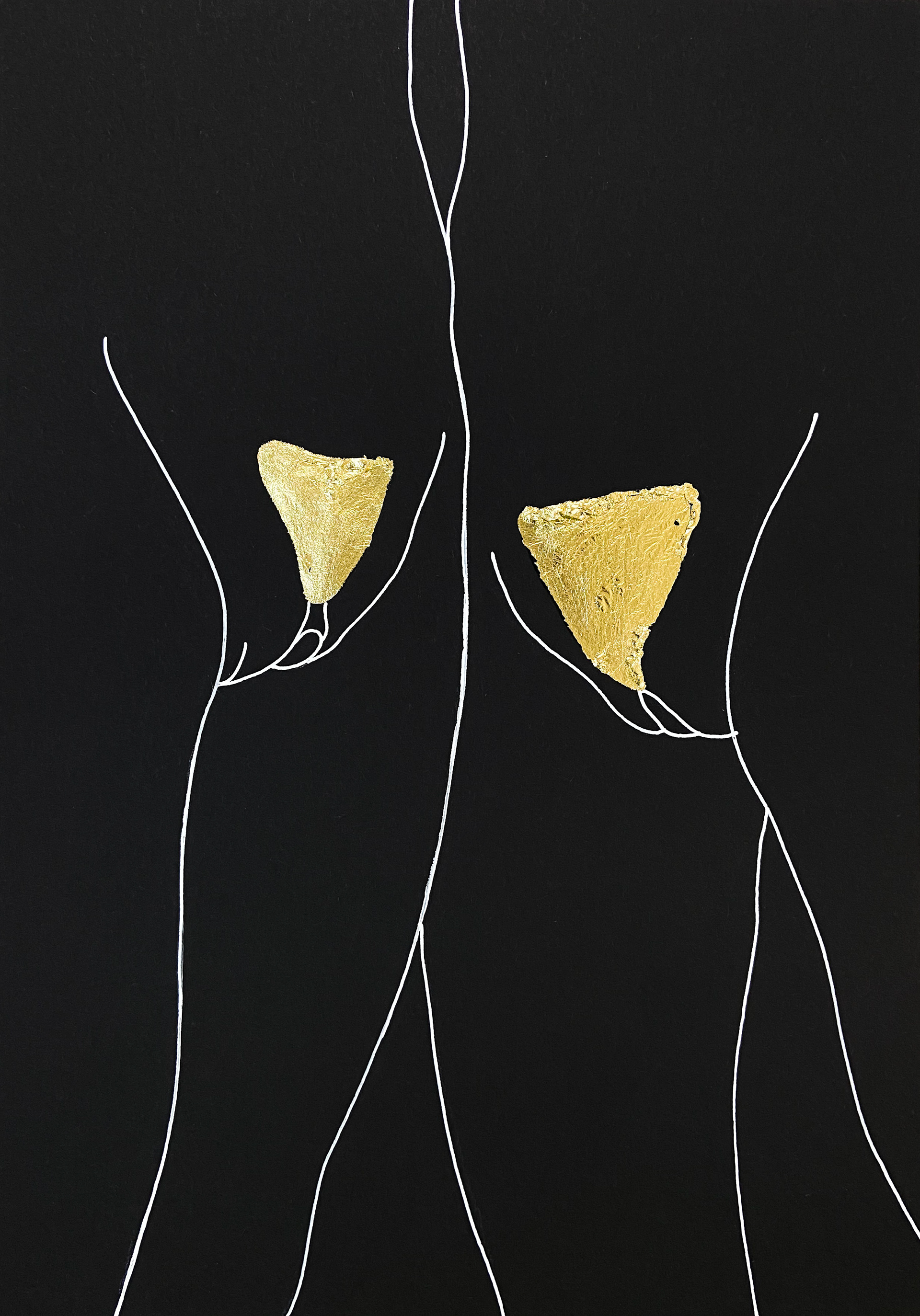 cardboard, gel pen, golden leaf, 30x21 cm (2020)