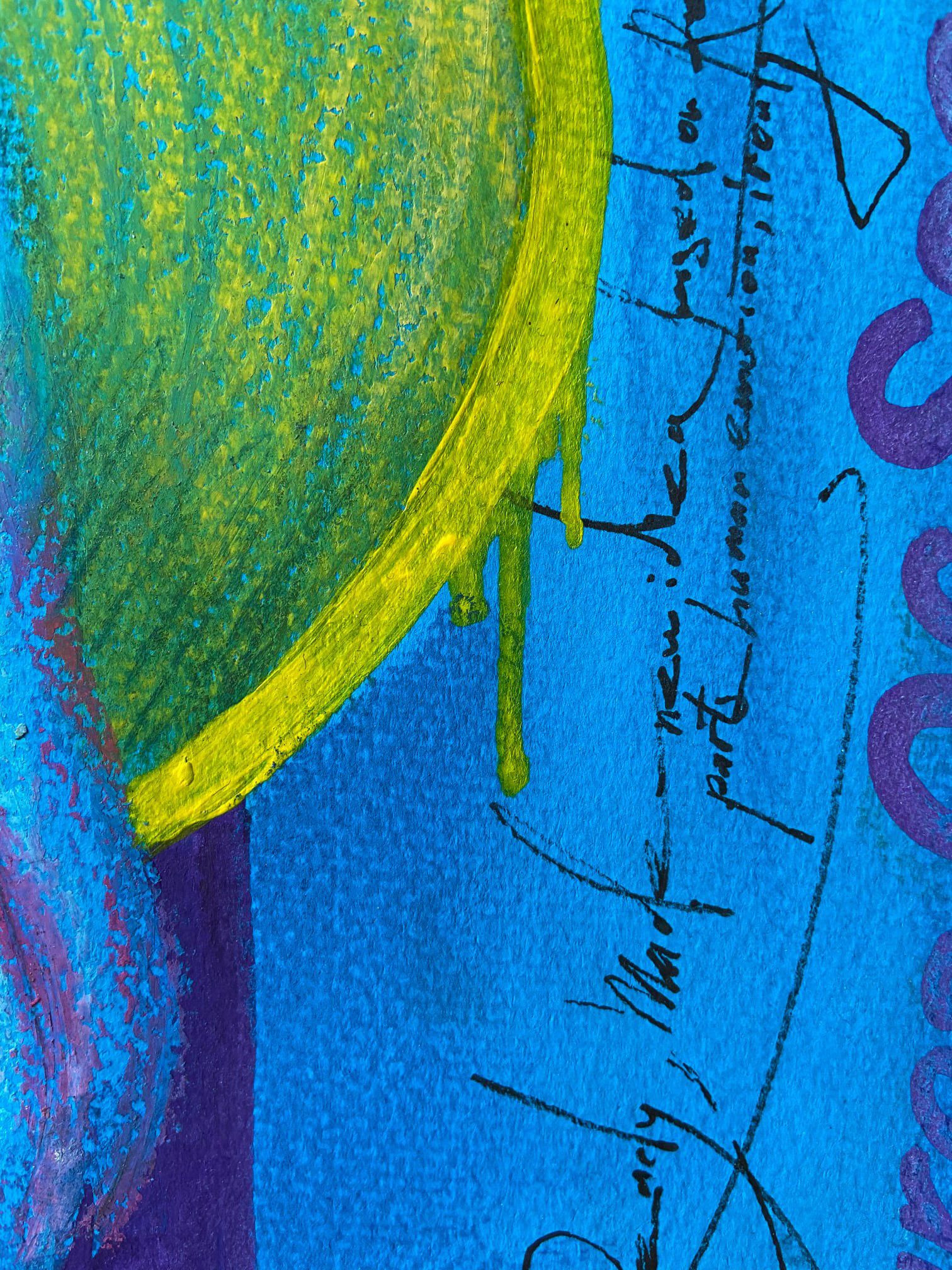 Paper, oil pastel, soft pastel, acrylic, liner, varnish